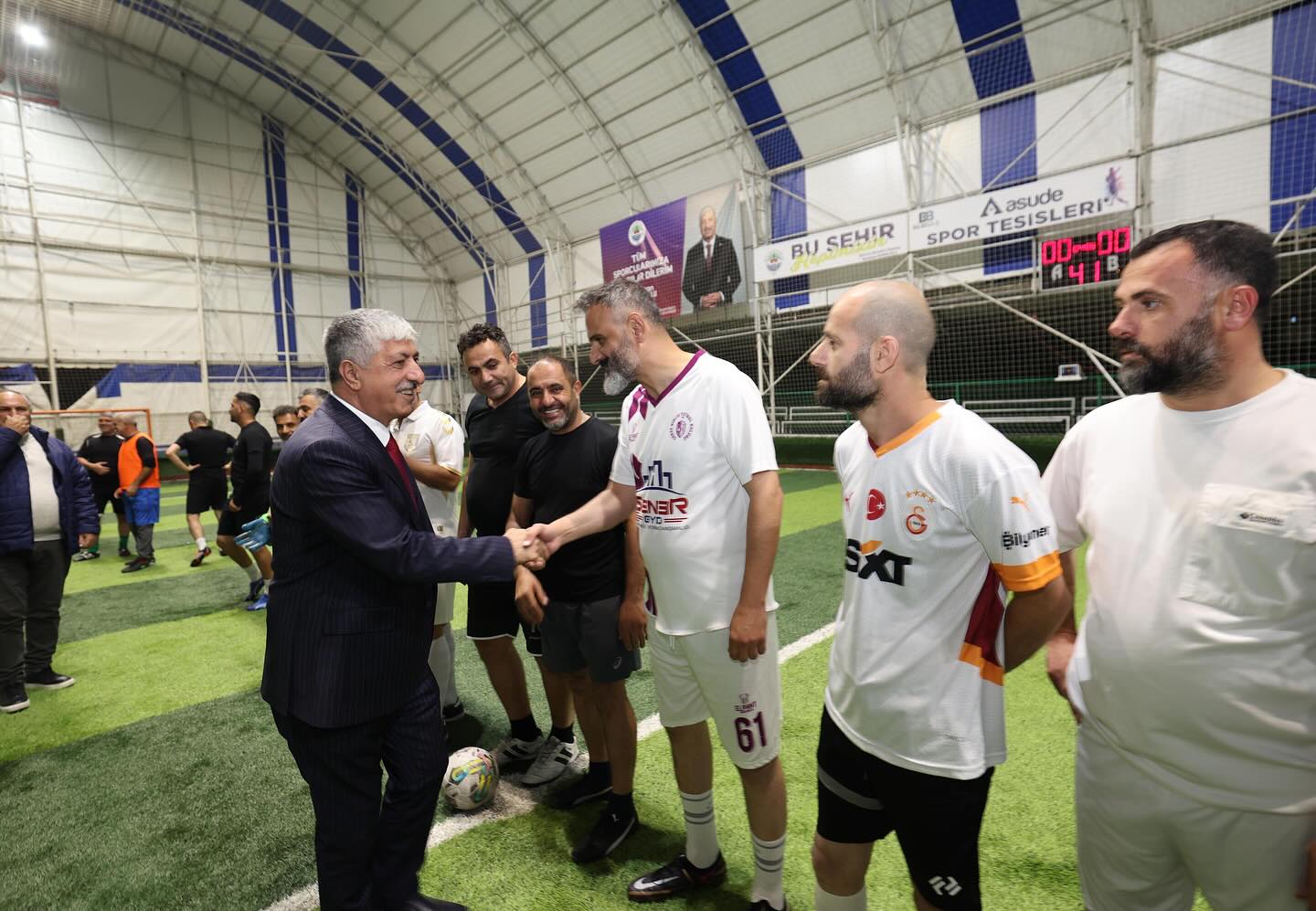Organizasyonun sponsoru ,iş insanı Şener Yılmaz herkes adına kısa konuşma yaptı,Yılmaz konuşmasında bir spor ve iş insanı olarak her daim spor,sporcu ve bu tür sportif faaliyetlere destek olmaya çalıştığını,bu tür anlamlı organizasyonlara destek olmaya ve insanların sporun içinde olması için katkılarının devam edeceğini bölgemiz takımlarının hep yanında olduğunu kadar yakın zamanda ulusal anlamda yayın içeren spor programına da destek olacağını ifade ederek .Bu akşam yanlarında olan Belediye başkanı Sn.Ramazan Ömeroğluna teşekkür ederek.organizasyonun onur konuğu spor insanı eski fifa kokartlı hakem Deniz Ateş Bitnel ve rakip takım kaptanı iş insanı Aldil yapı ve Grekol DreAM city yönetim kurulu başkanı İzzet Yıldırım ile birlikte,günün anısına Sn.Ramazanoğlu’na tüm katılımcılar adına Tataroğlu yapı’nın özel tasarlattığı hakem forması ve hediye ederek programa katılımından dolayı teşekkür ettiler.