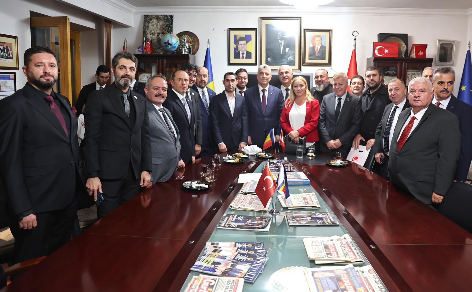 Yönetim Kurulu Başkanımız Abdurrahman Aslantaş, Kocaeli Milletvekilimiz ve önceki dönem Yönetim Kurulu Başkanımız Nail Çiler, Meclis Başkanımız Oğuz Şerifalioğlu, Koordinasyon Başkan yardımcısı Dilek Bahadır, Yönetim Kurulu Sayman Üyemiz Barış Er, Yönetim Kurulu Üyemiz Sinan Yücel, Genel Sekreterimiz Av. Arb. Çağrı Solak, Meclis Üyemiz Murat Paç, 7. Meslek Komite Başkanımız Mustafa Çakır ve 17. Meslek Komite Başkanımız Olcay Akgün’den oluşan heyet, Romanya–Türkiye Ticaret ve Sanayi Odası’nı ziyaret ederek iki ülke arasındaki ekonomik iş birliklerinin geliştirilmesine yönelik görüşmeler gerçekleştirdi.
