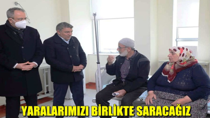 Ziyarette yaralı vatandaşlar ile durumları hakkında sohbet eden Kaymakam Kubilay ve Başkan Şayir, “Bizler, her zaman sizlerin yanındayız. Rabbim, sağlık ve sıhhat versin. Millet olarak birlik ve beraberlik içerisinde bu sıkıntıların üzerinden geleceğimize inanıyoruz. Yaralarımızı hep birlikte saracağız" dediler.